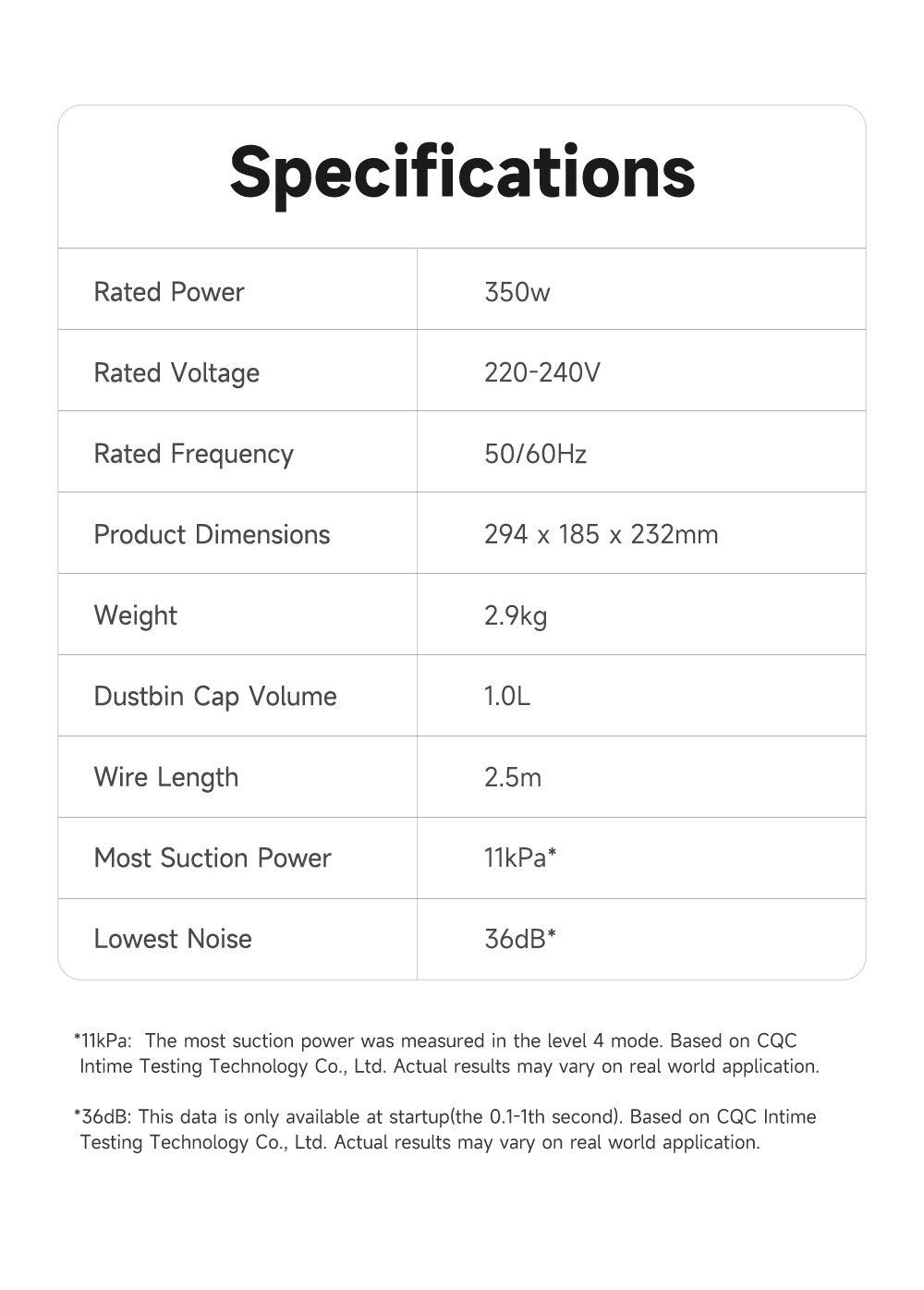Peak 11kPaSuction Power