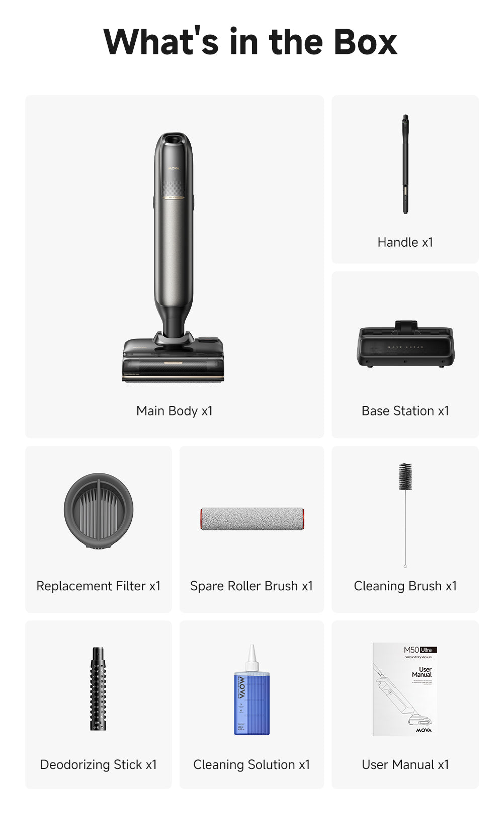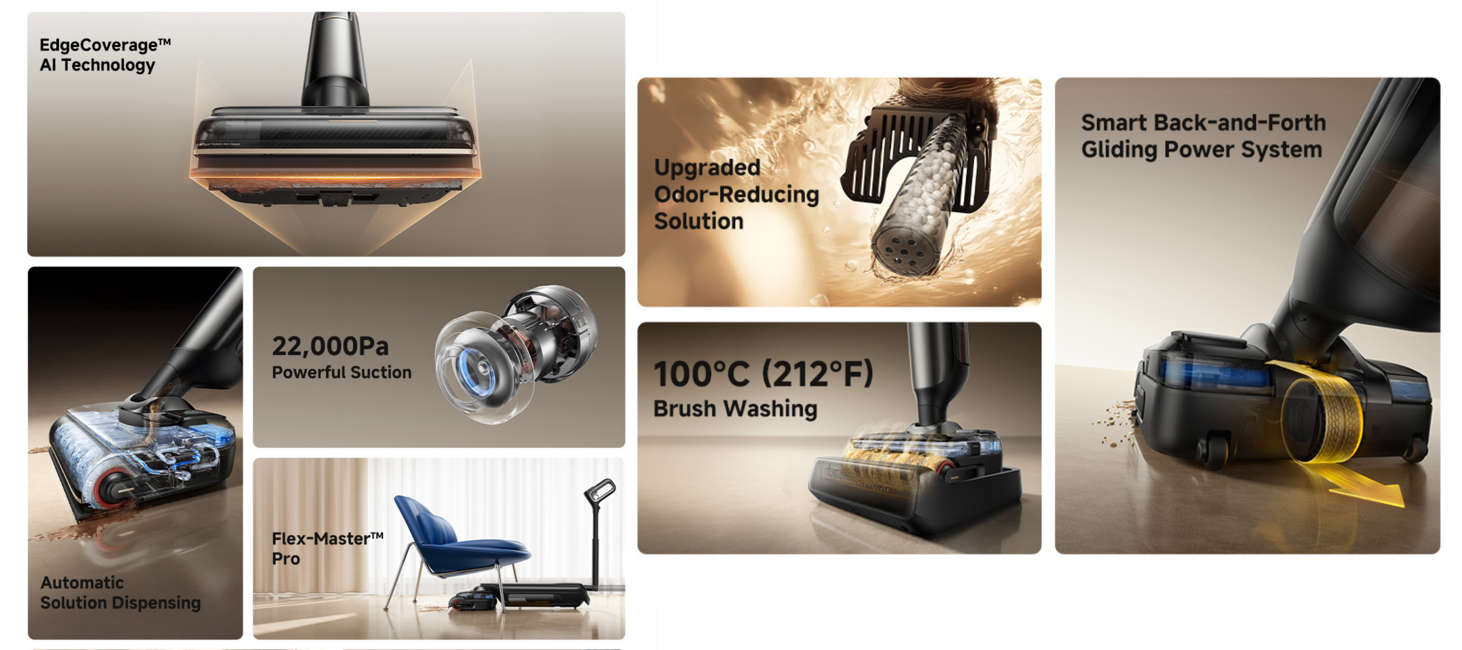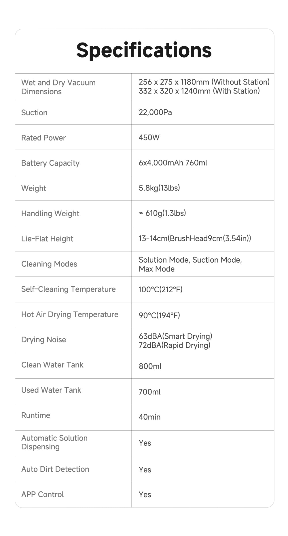 - Cleaning Modes: Smart / Suction / Solution Modes
