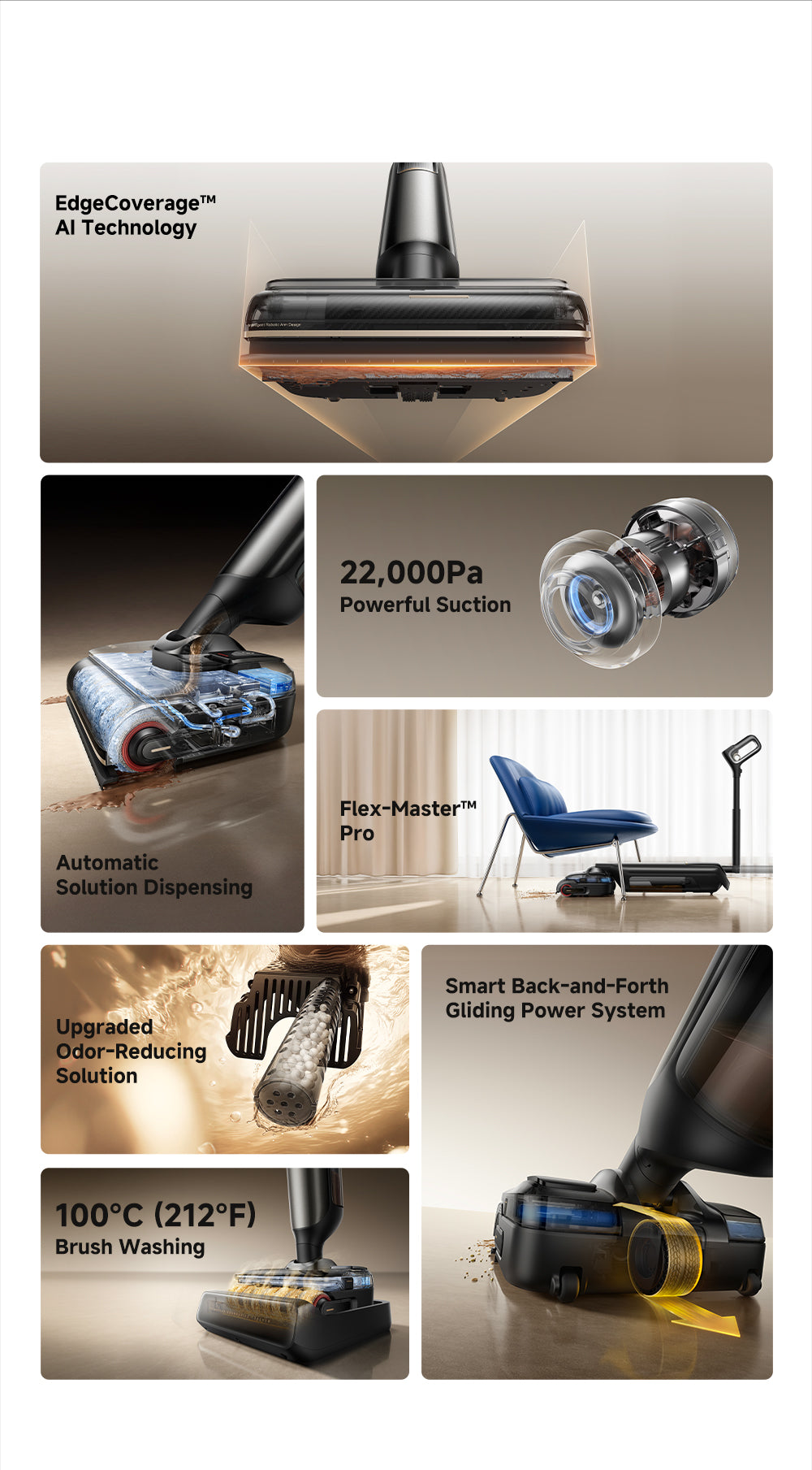 M50 Ultra’s EdgeCoverage AI utilizes a smart arm on the roller brush to clean tight front wall edges, delivering true zero-gap cleaning on all sides.