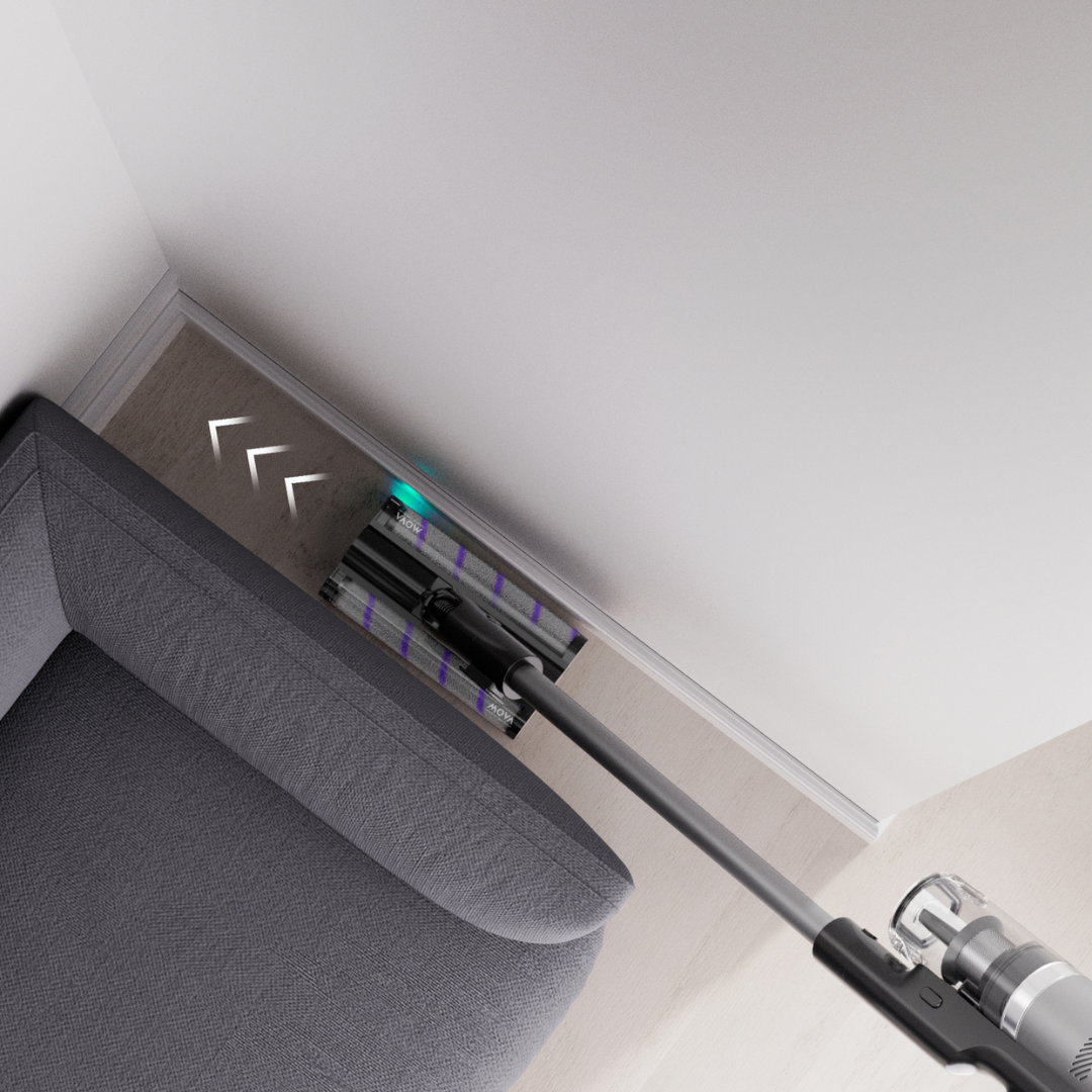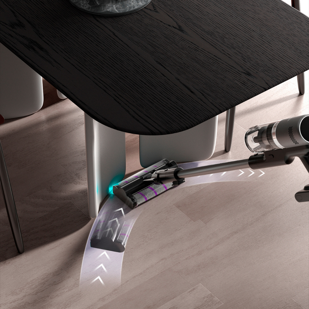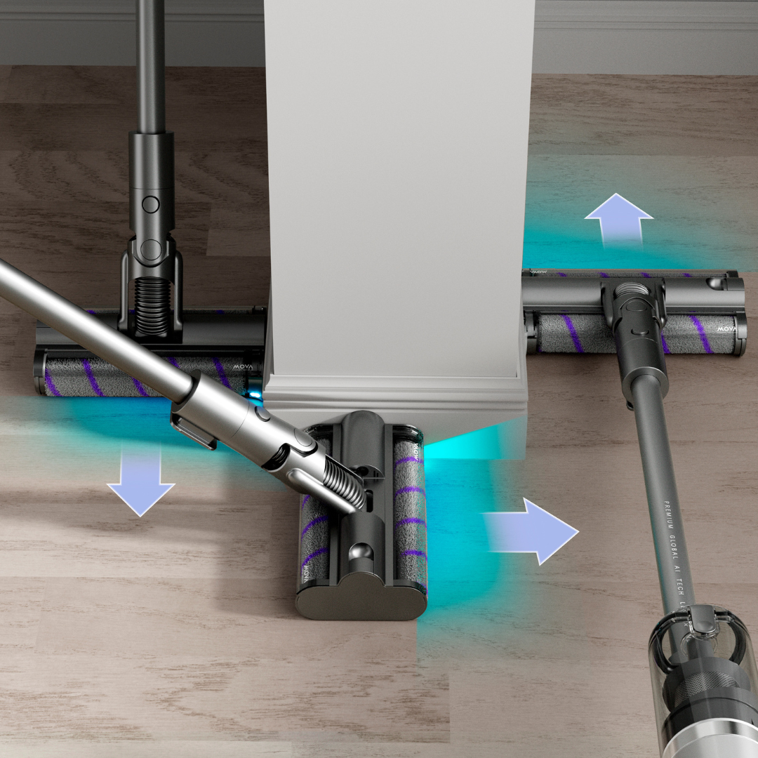 Unlike traditional brushes, the MOVA I10’s Twin FreeGlide™ rollers with omni wheels glide smoothly in any direction, cutting effort and overlap.