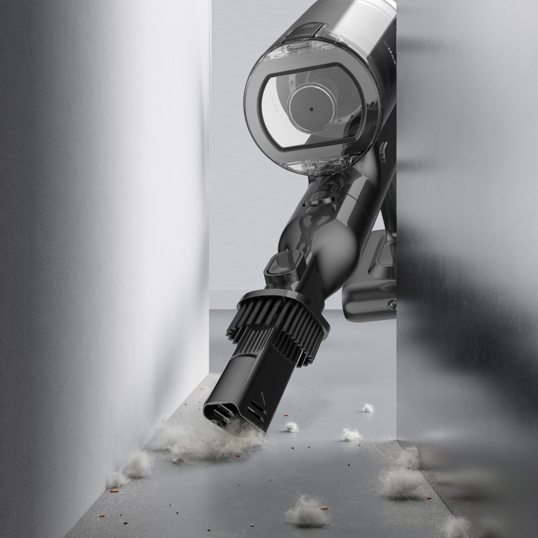 - Demonstrate the cleaning performance by employing the attachment to clean the sofa crevices, window frames, or corners behind the sofa or shelf.