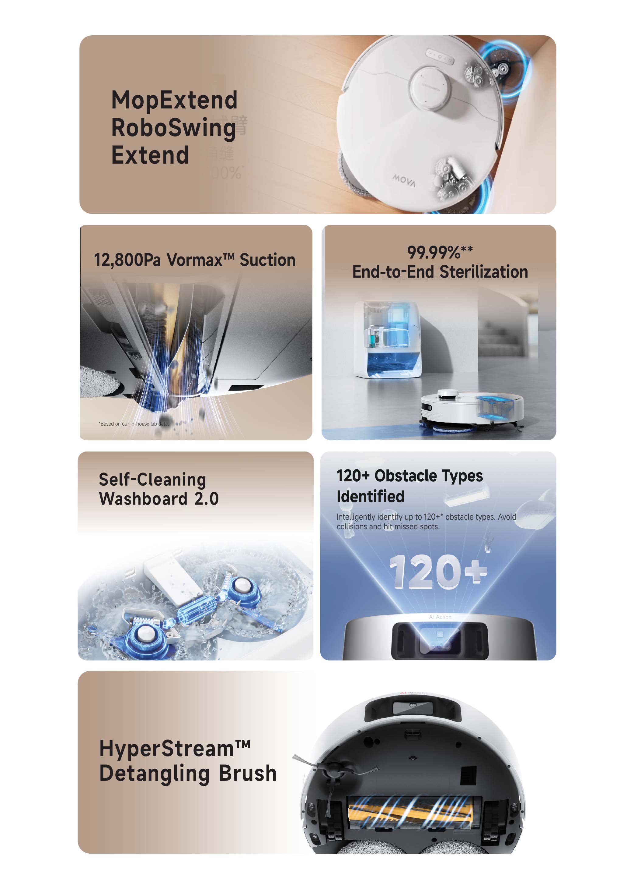 The Mova P20 Ultra combines ultra-strong suction power, advanced navigation, and intelligent mop-washing technology, offering a fully hands-free floor cleaning solution that's smarter and more hygienic than traditional robot vacuums.