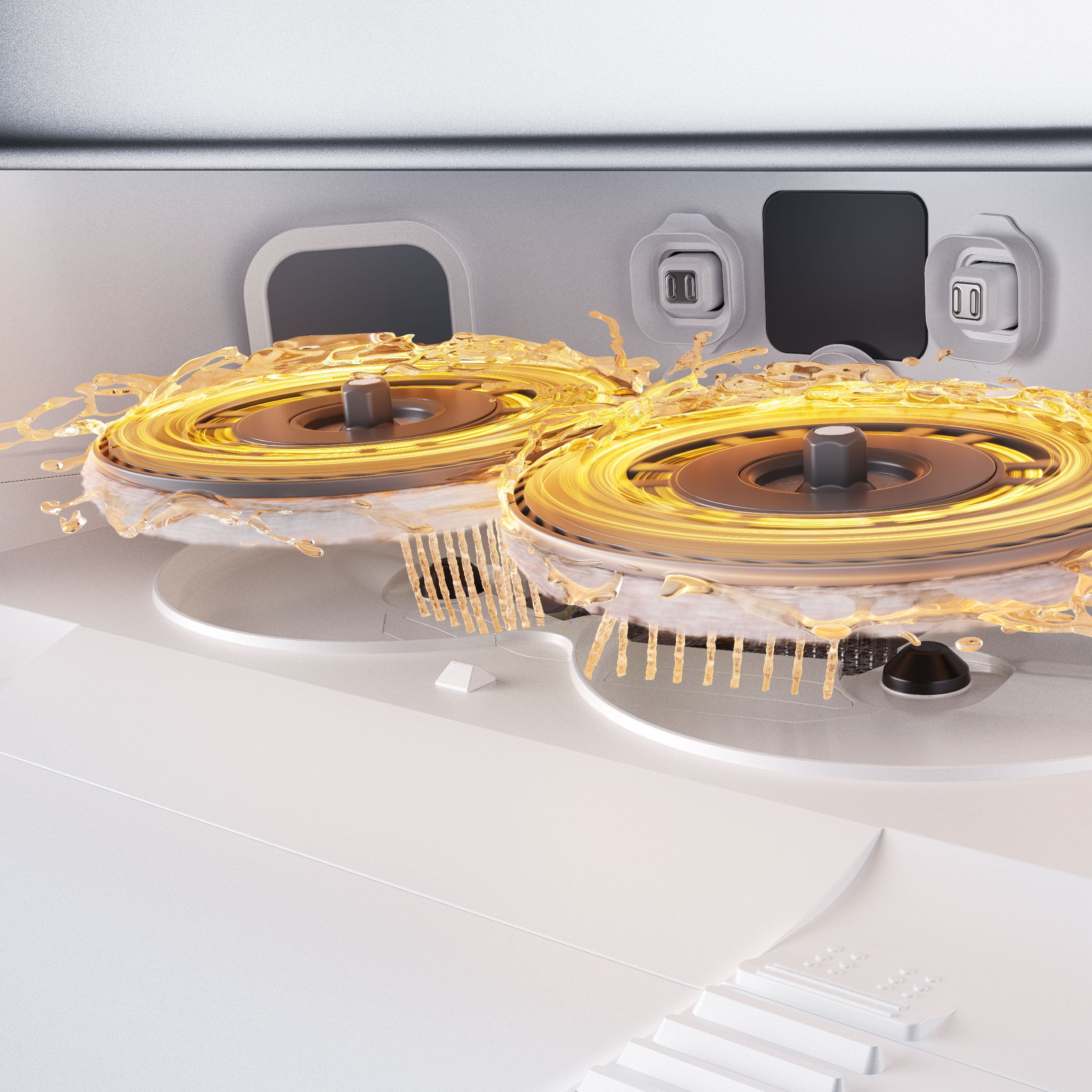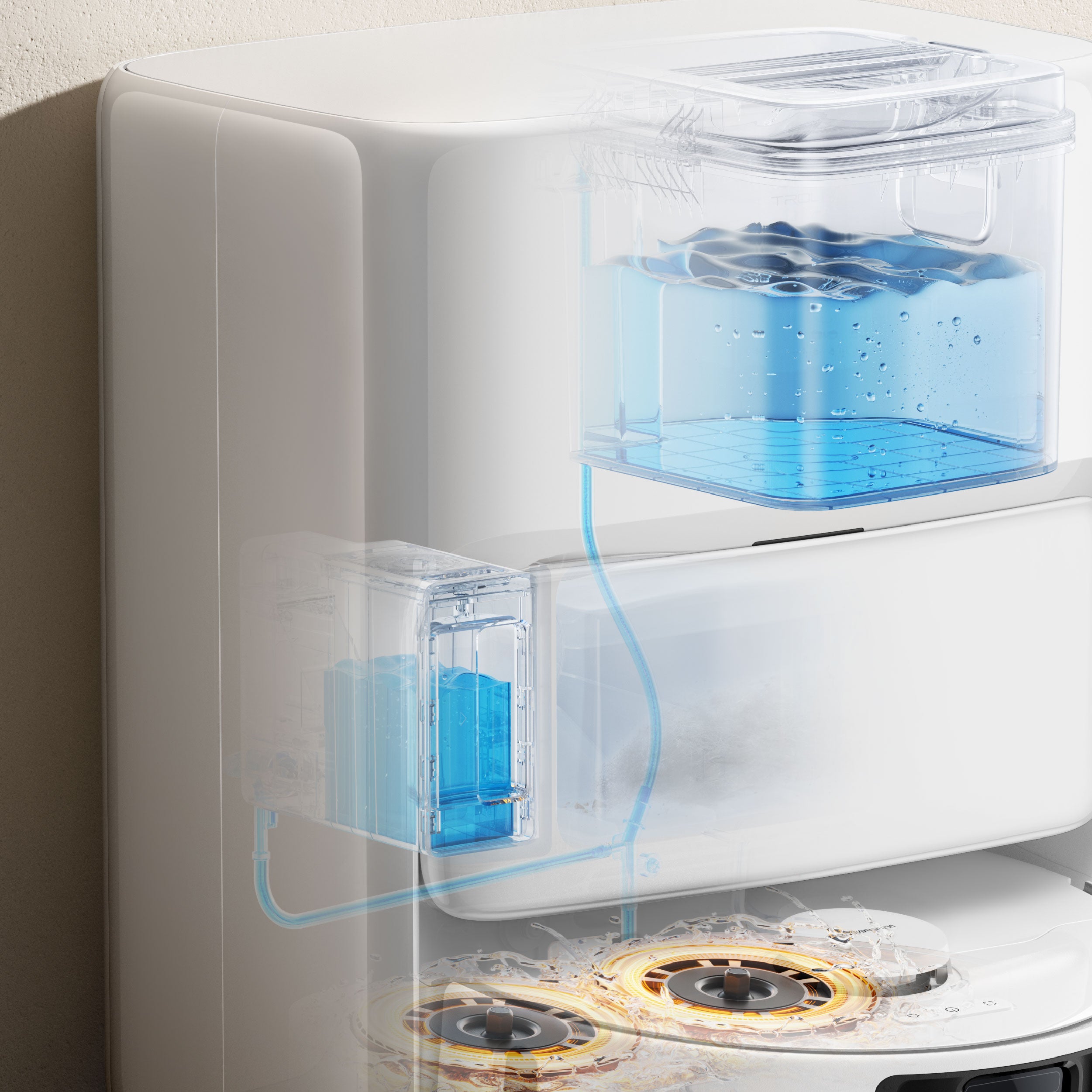 > This robot consistently cleans the mop and base station with a duo scraper and extended washboard.