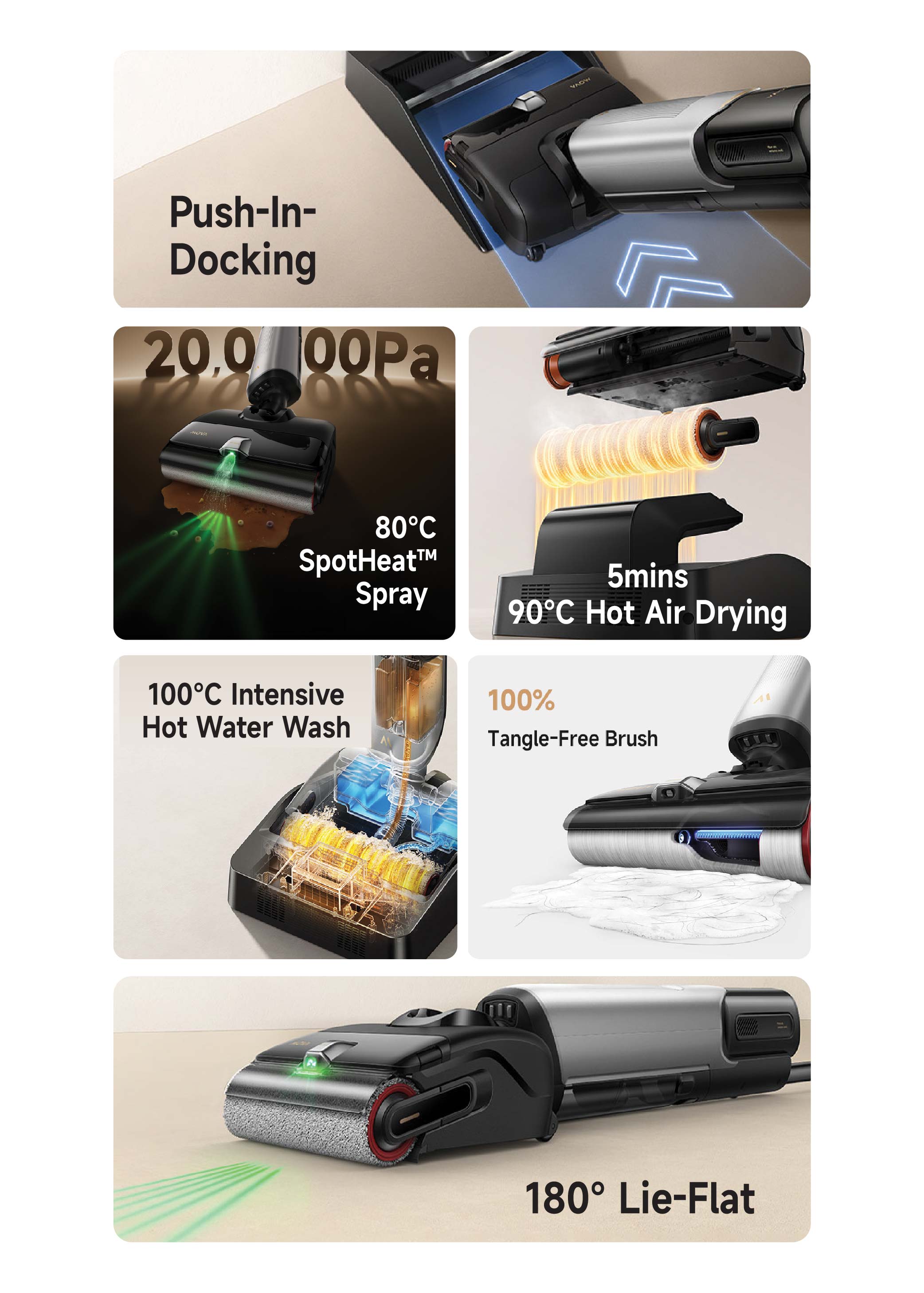Thanks to its advanced SpotHeat™ Spray Cleaning system. It uses an 80°C hot water spray to directly target stubborn messes.