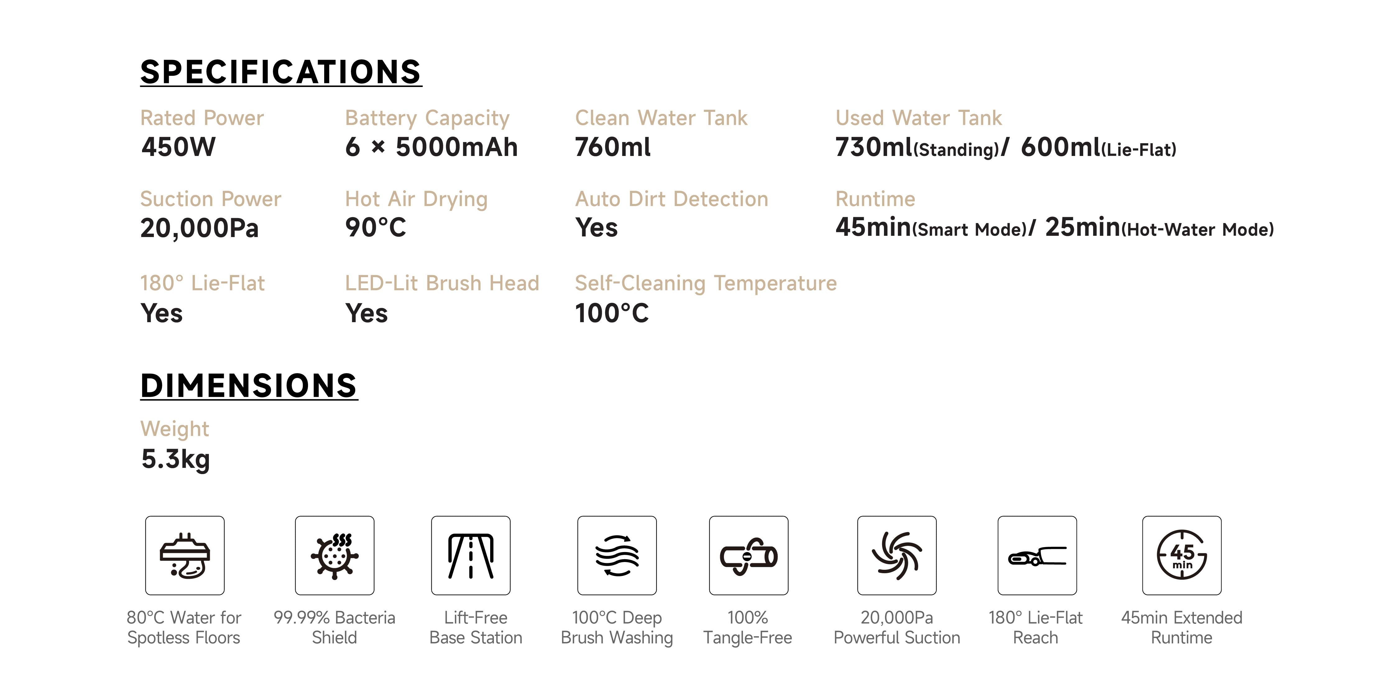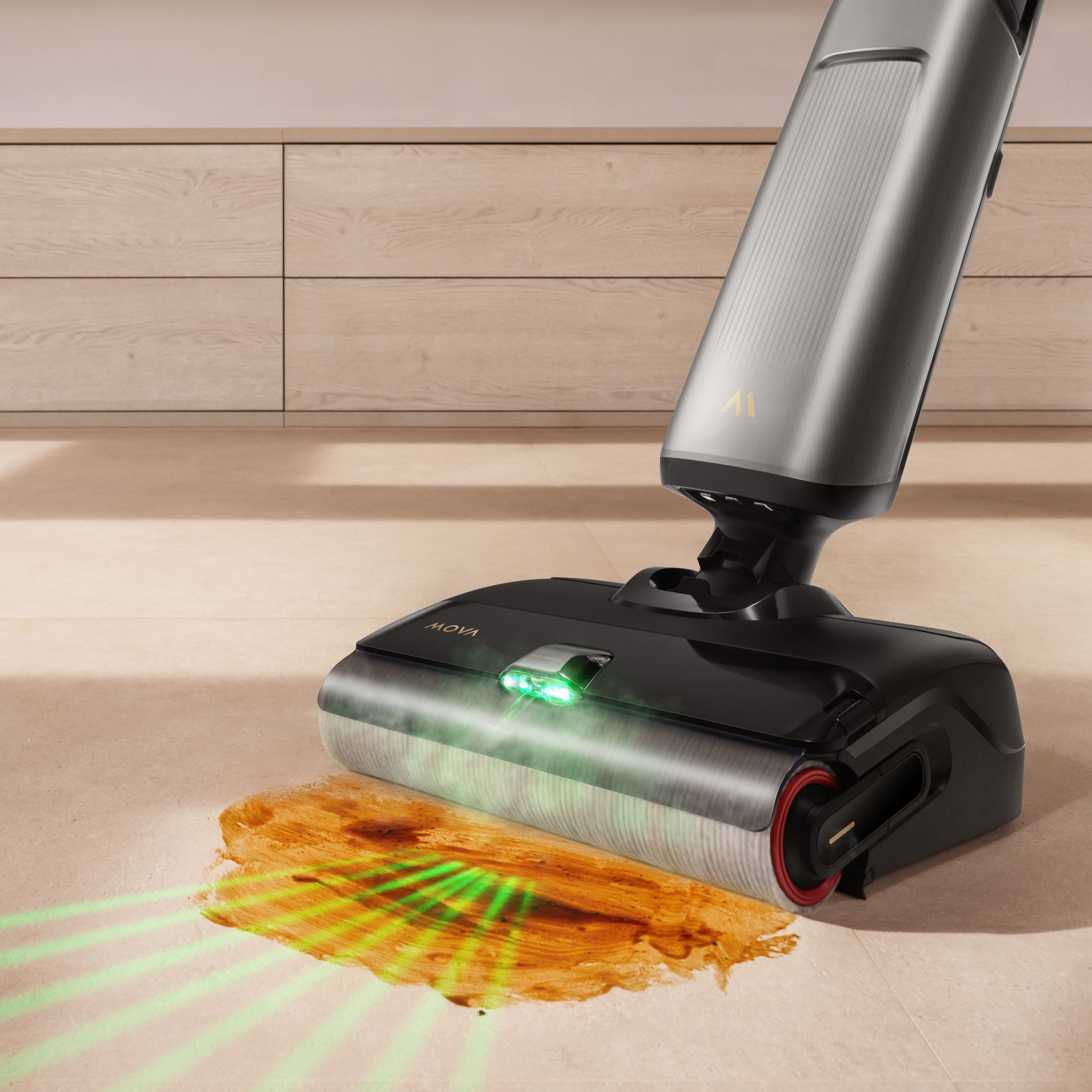 > The First Wet-Dry Vacuum with Real-time Hot Water Spray (by 270W* High-Power Energy-Concentrating Boiler) removes stubborn stains 10x faster with just two passes, effortlessly tackling dried spills like soy sauce.
